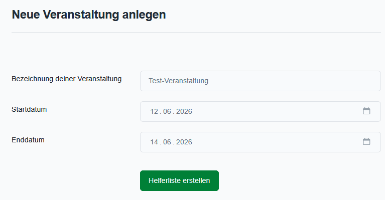 Nach dem Speichern wird automatisch eine neue Helferliste für das gewählte Datum erstellt. Praktisch: Veranstaltungen können später auch dupliziert werden – ideal für jährlich wiederkehrende Events.