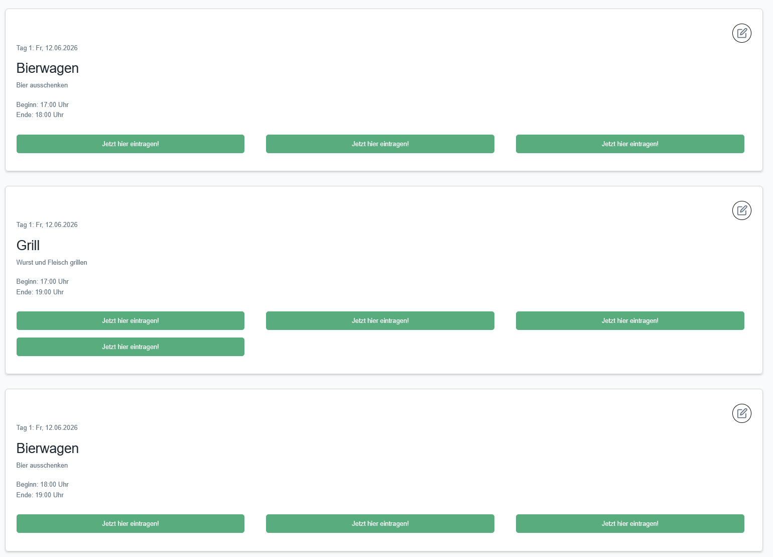 - welche Aufgaben es gibt (z. B. Bierwagen, Grill, Aufbau)